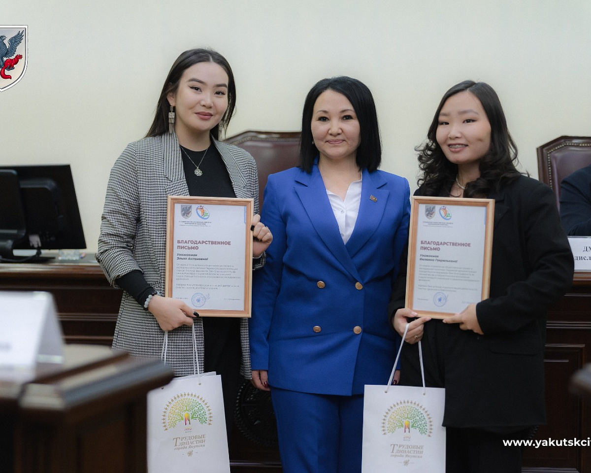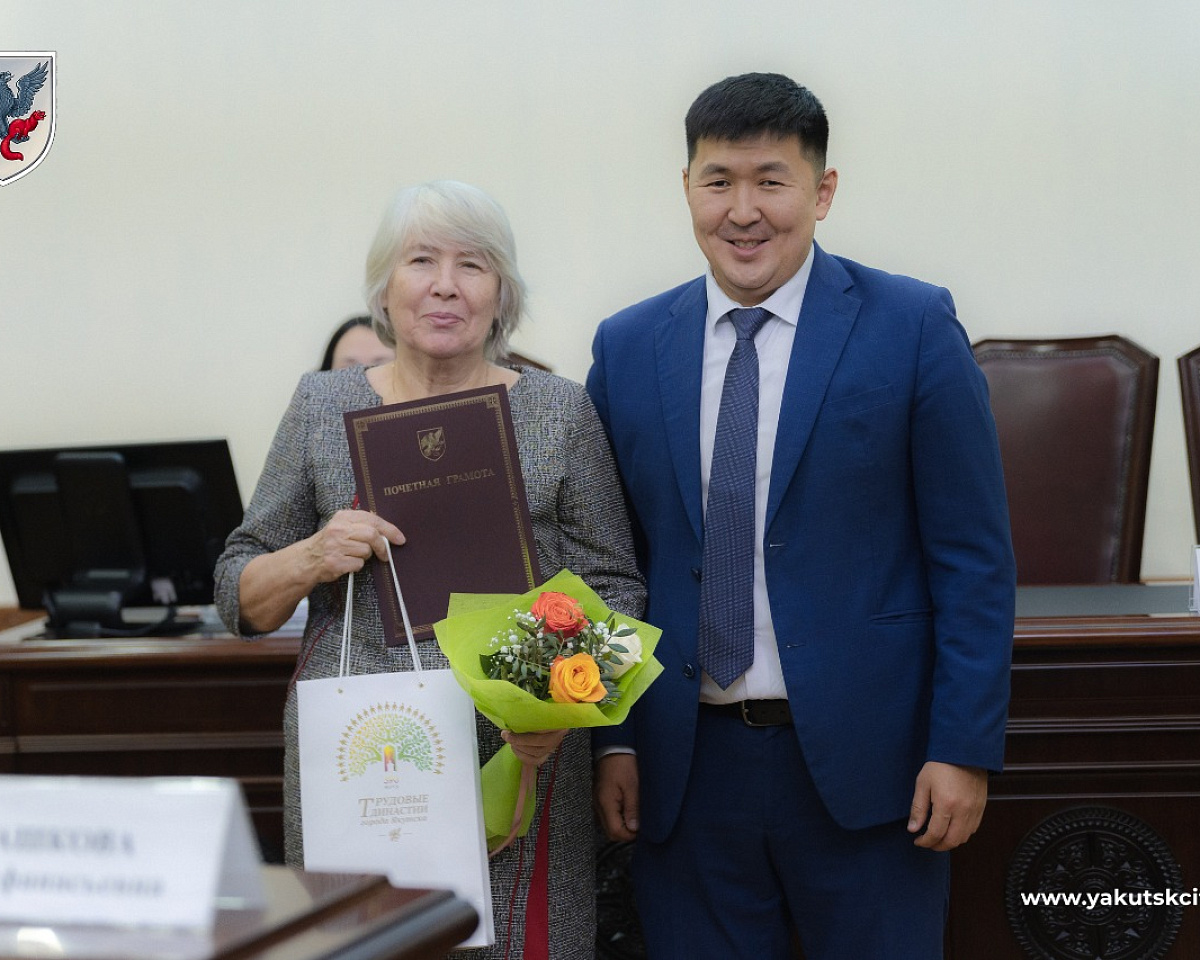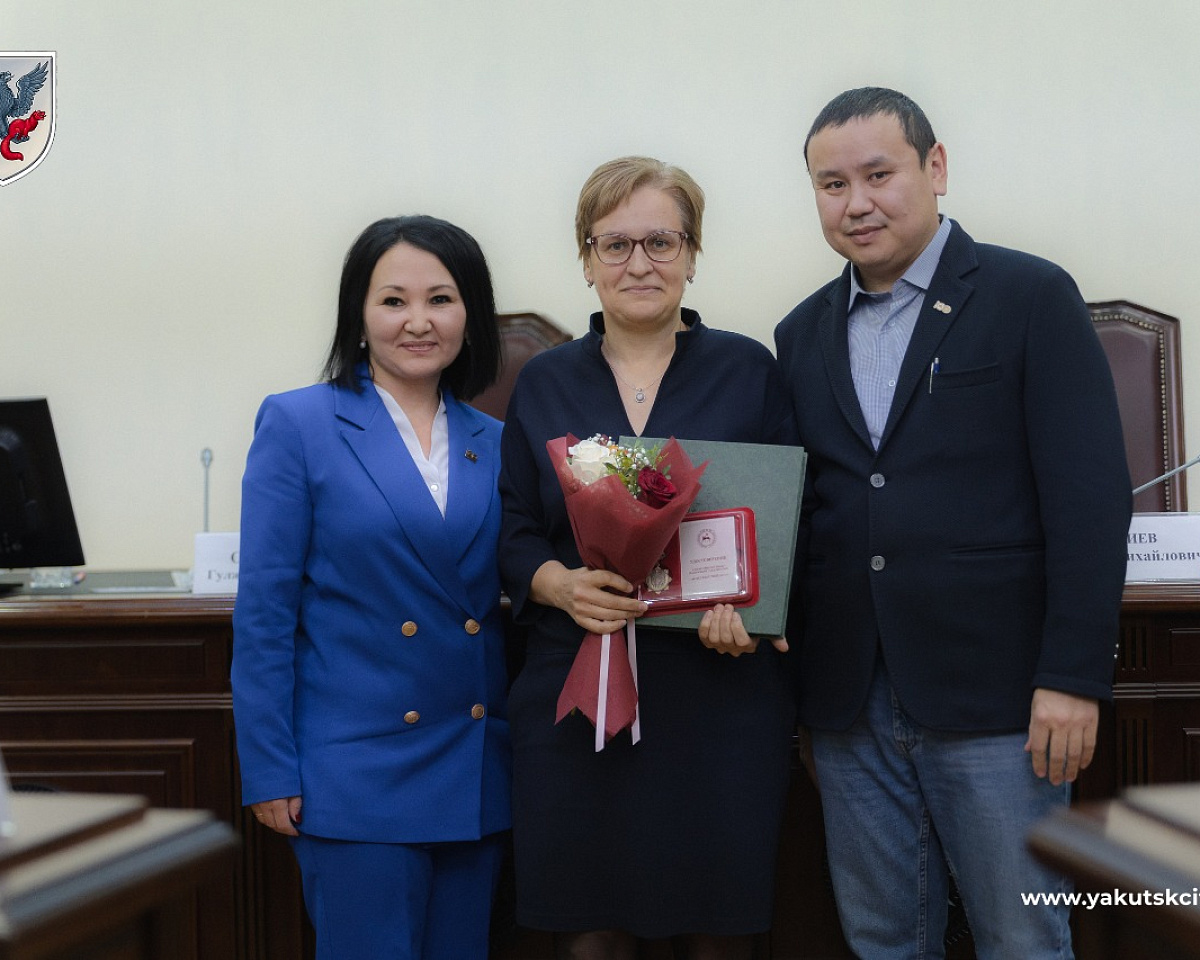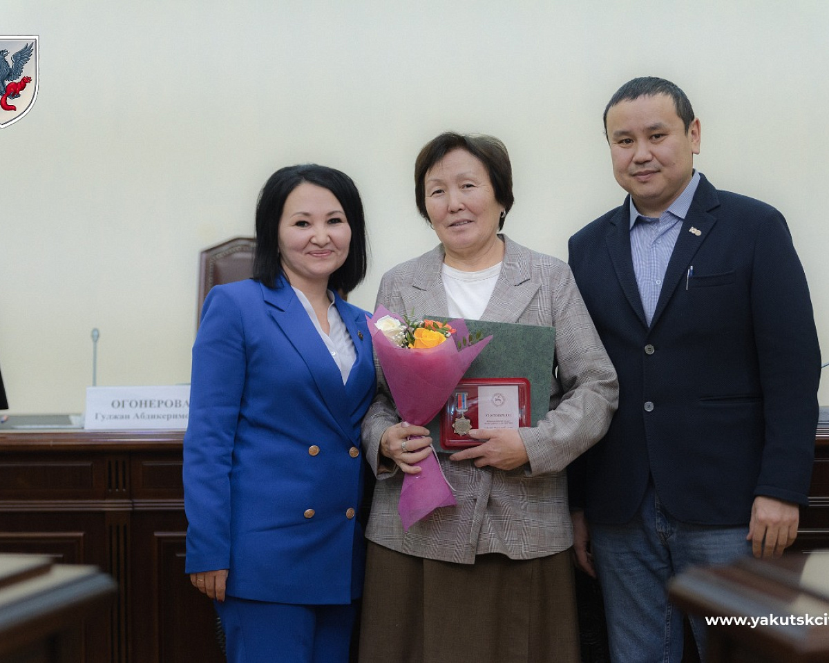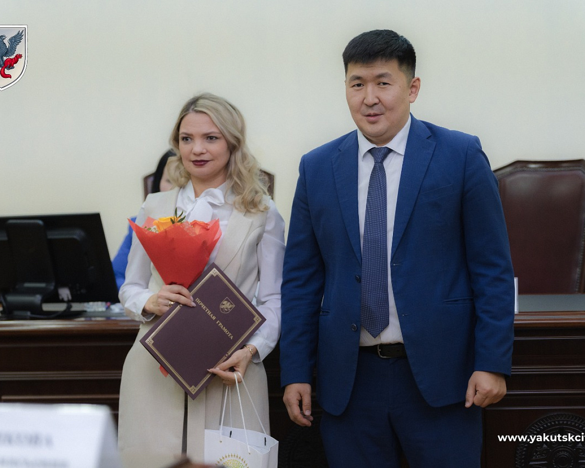 Юбилейными знаками «390 лет основания города Якутска» награждены директор ООО «Ректайм» Афанасий Киприянов, педагог муниципального детского сада № 27 «Кораблик» Марина Лобанова. Почетными грамотами Окружной администрации города Якутска отмечены начальник отдела доходов ПАО «Ленское объединённое речное пароходство» Елена Спиридонова, главный специалист картографической службы ФБУ «Администрация Ленского бассейна» Ольга Федосеенко, специалист ОАО «ЯкутПНИИС» Георгий Егоров.