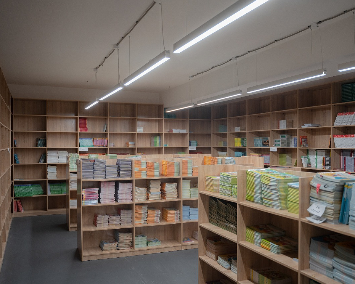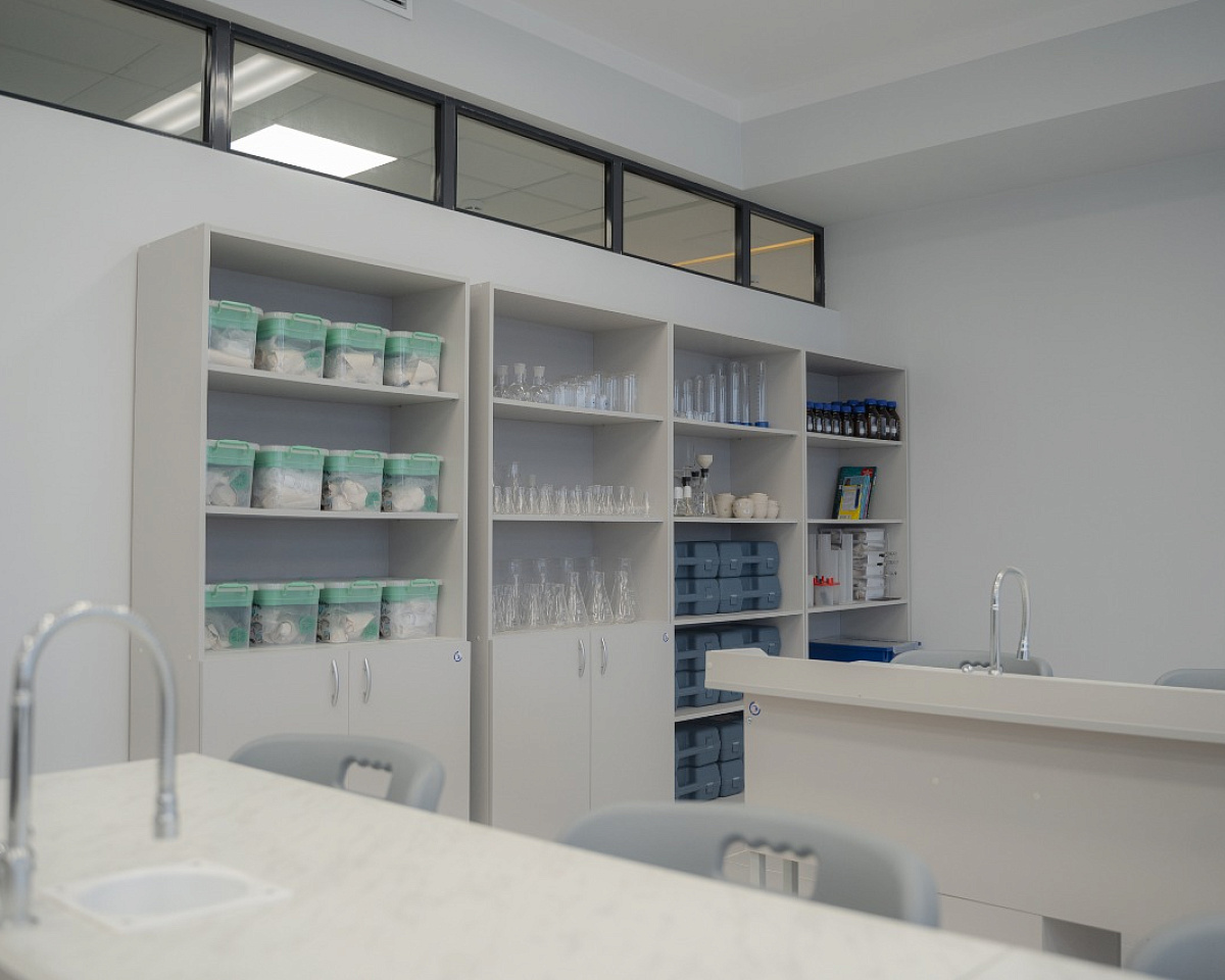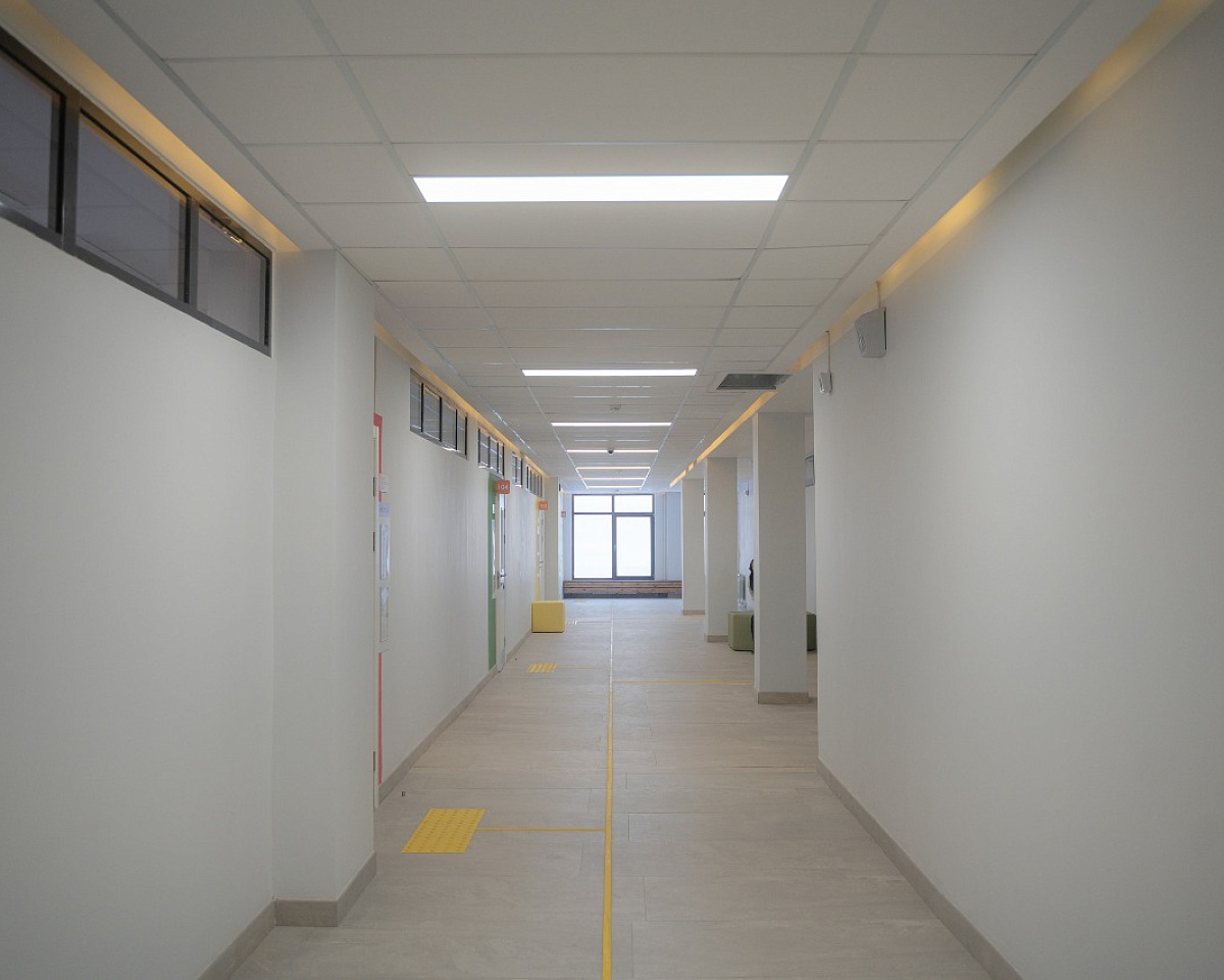 В новом здании школы размещены учебные кабинеты, библиотека с книгохранилищем, медицинский кабинет, столовая с обеденным залом, спортивный и актовый залы, зал для занятий хореографией. Каждый учебный кабинет оснащен современным оборудованием. Закуплены уникальные интерактивные панели, компьютеры, наушники, спортивный инвентарь, швейные машины, лабораторное оборудование для уроков химии, физики, биологии. На территории школы также обустроена новая спортивная площадка и тренажерная зона.