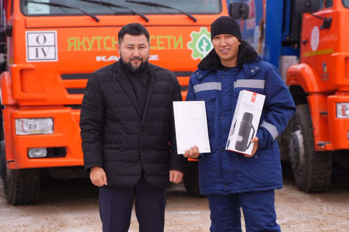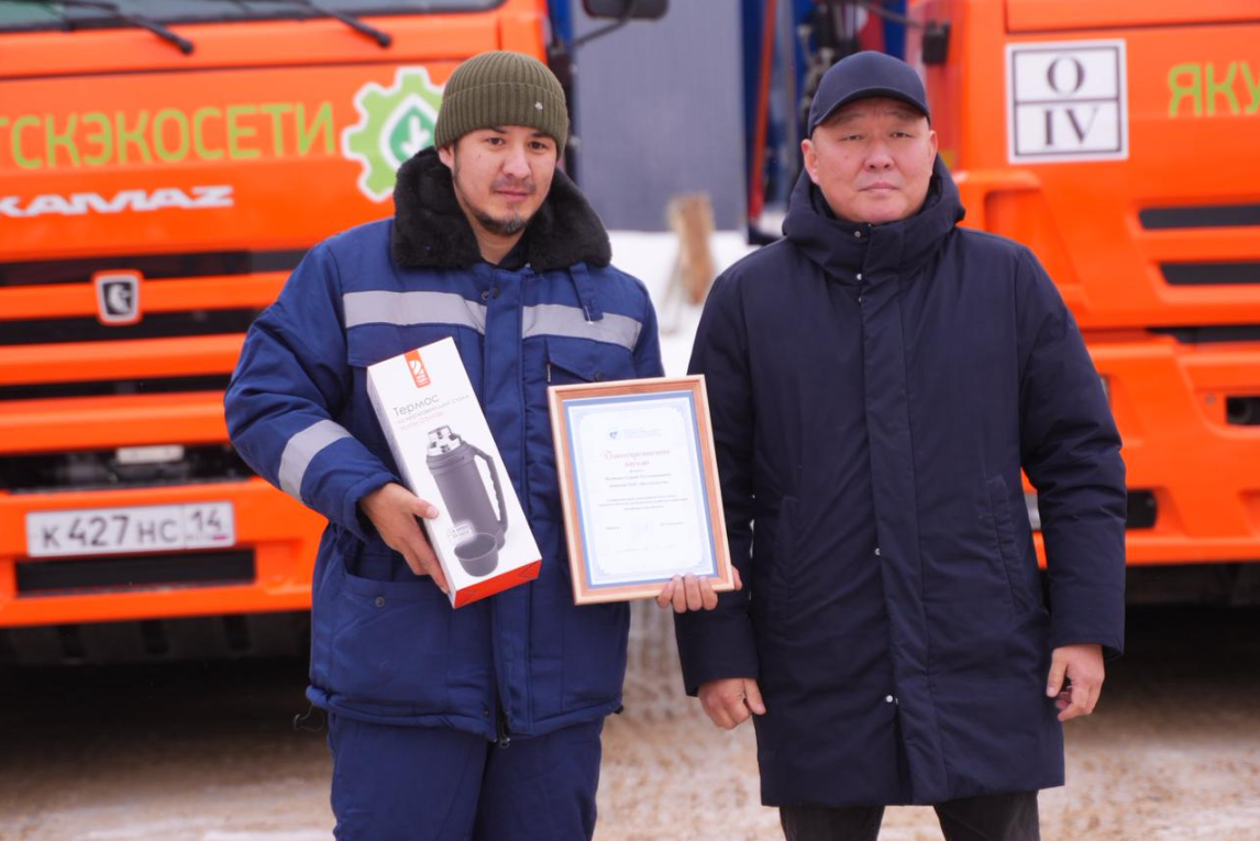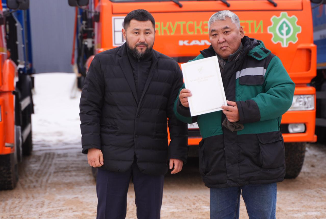 За многолетний добросовестный труд, высокий профессионализм и преданность своему делу вручили Благодарственные письма Первого заместителя Председателя Правительства РС(Я) Тимофею Сметанину, водителю, Владимиру Хлебникову, рабочему, Игорю Петрову, слесарю; Благодарственные письма Министерства жилищно-коммунального хозяйства и энергетики РС(Я) водителям Ивану Павлову, Сухрабу Косимову, Улуу Жетимишу и ведущему специалисту по логистике и эксплуатации Гаврилу Афанасьеву; Благодарственные письма Окружной администрации города Якутска Александру Осипову, механику по выпуску, Вячеславу Толмачеву, слесарю, Нурлан Орозбакову, водителю.