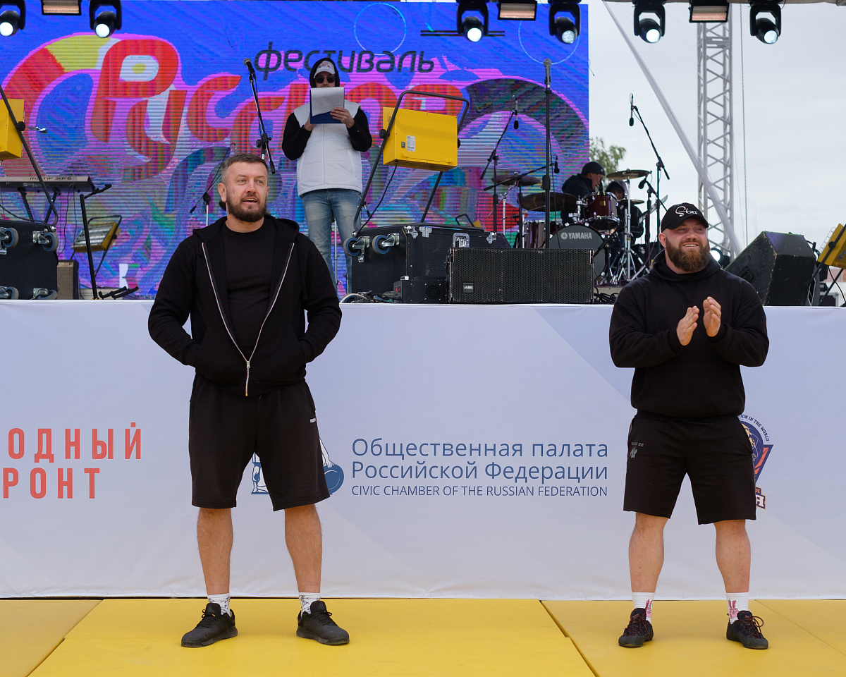 Участники события увидели уникальное шоу настоящих русских богатырей – «Сильнейшая Нация Мира». Мастера спорта по пауэрлифтингу – самый сильный человек Дальнего Востока 2019 года, серебряный призер чемпионата России 2020 года в категории до 110 кг Владимир Тарасов, чемпион Дальнего Востока по пауэрлифтингу Александр Шабанов, самый сильный человек города Комсомольска-на-Амуре в 2017, 2019 годах Андрей Назаров показали недюжинные способности. Силачи сгибали арматуры о голову, надували грелки, скручивали сковородки, жонглировали гирями.