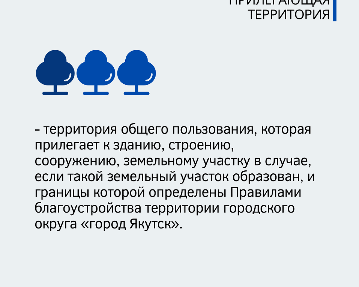Окружная администрация города Якутска напоминает, что уборку прилегающей территория к магазинам, нестационарным торговым объектам, зданиям учреждений, предприятий обязаны осуществлять собственники или владельцы земельных участков, на которых эти объекты расположены.