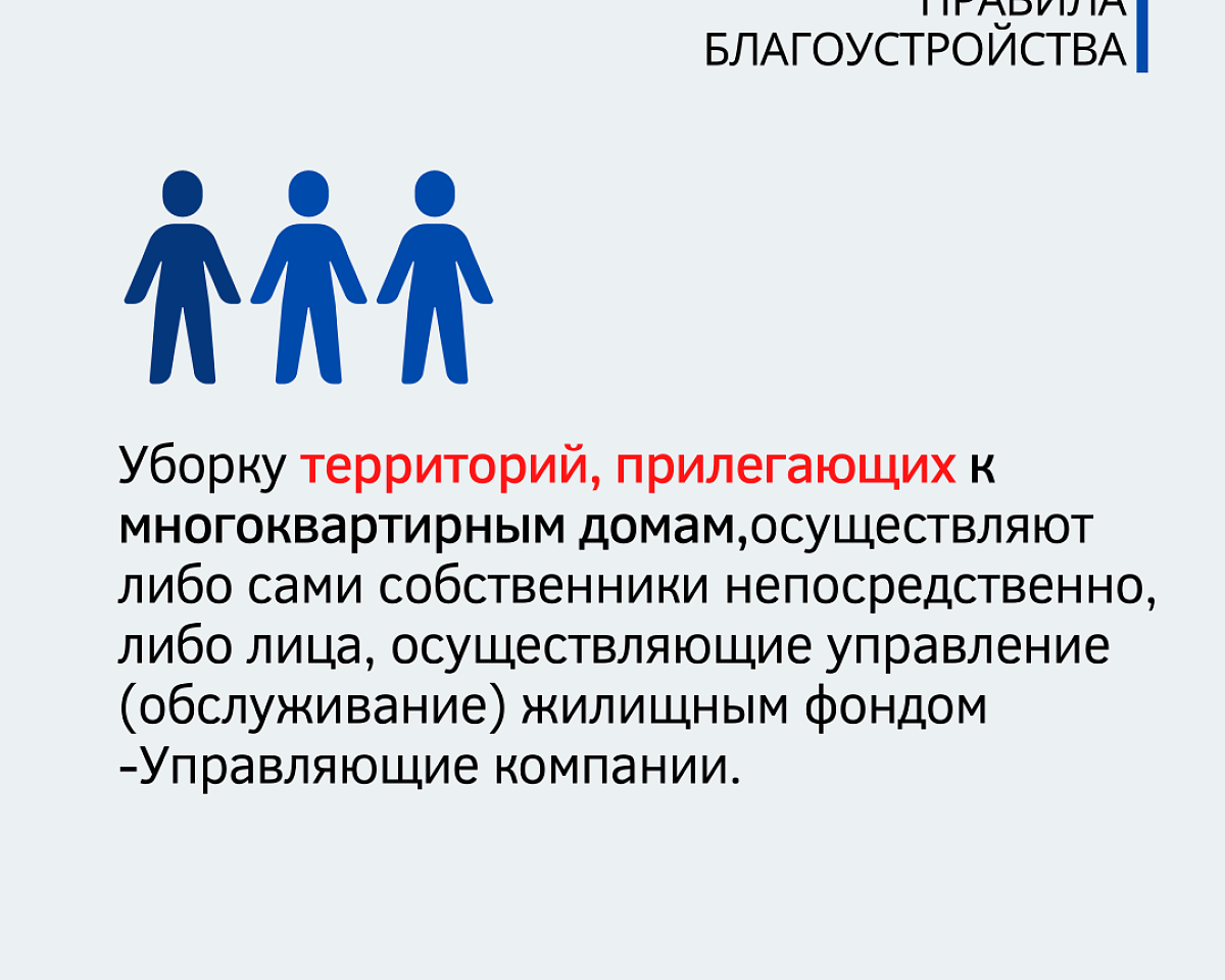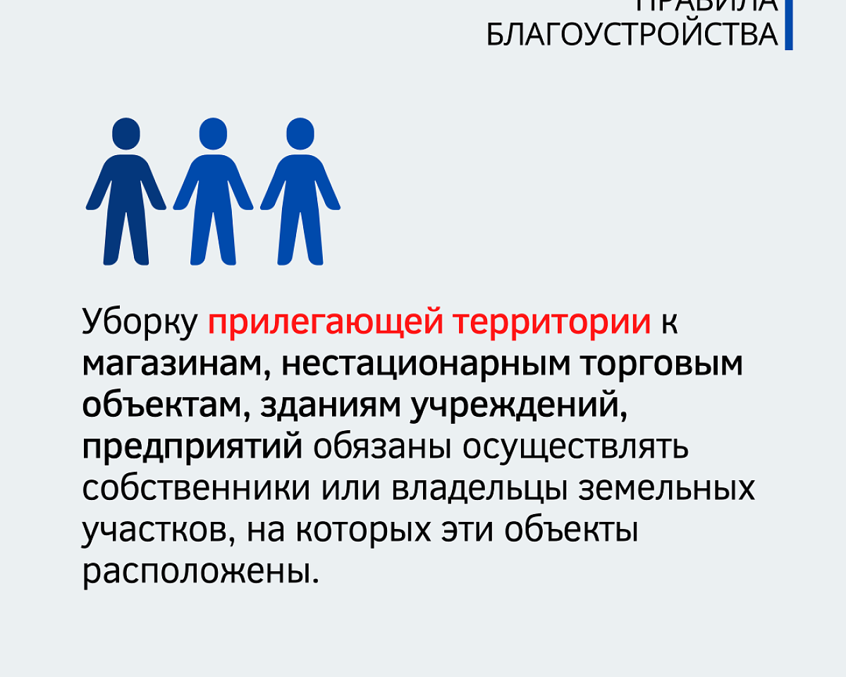 Уборку прилегающей территории к магазинам, нестационарным торговым объектам, зданиям учреждений, предприятий обязаны осуществлять собственники или владельцы земельных участков, на которых эти объекты расположены.