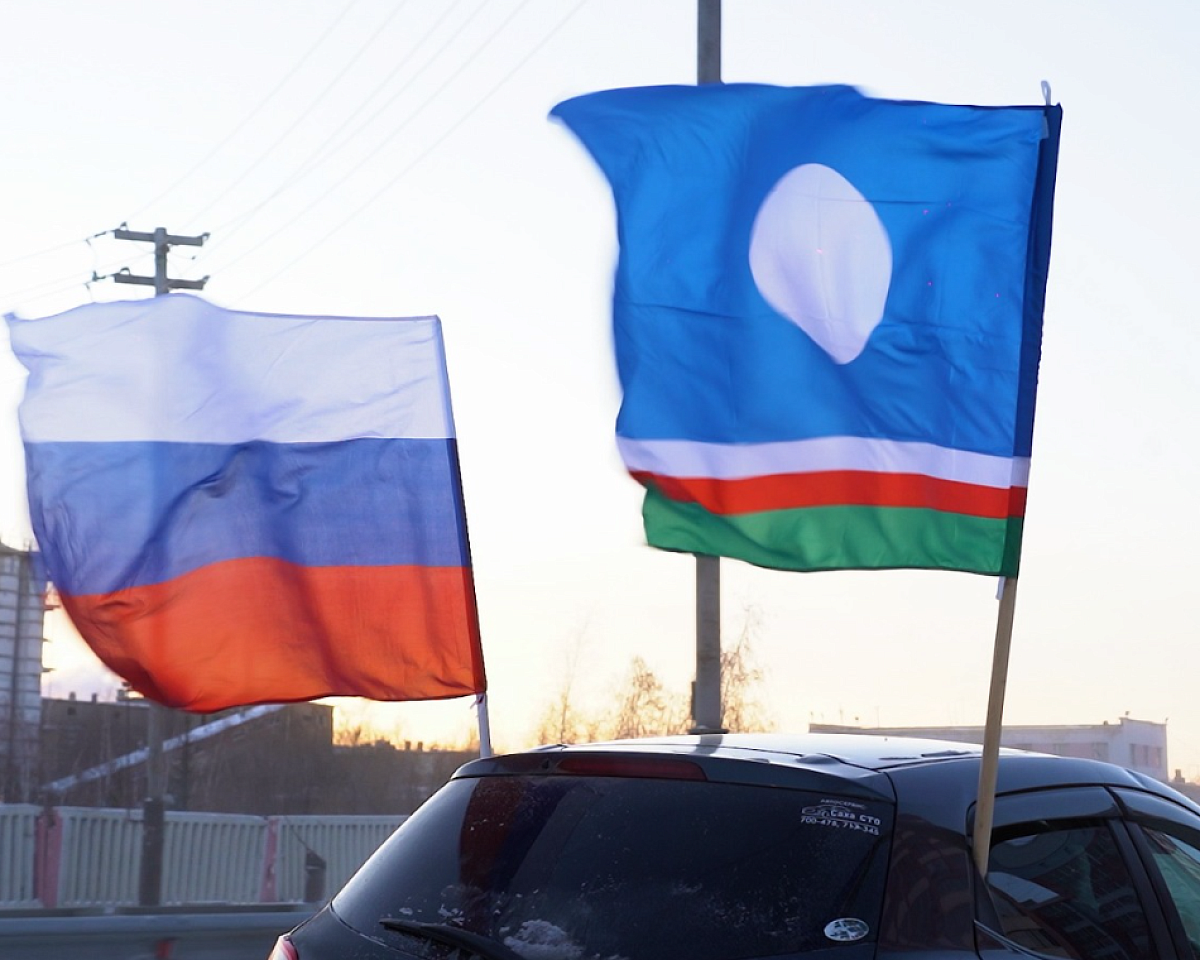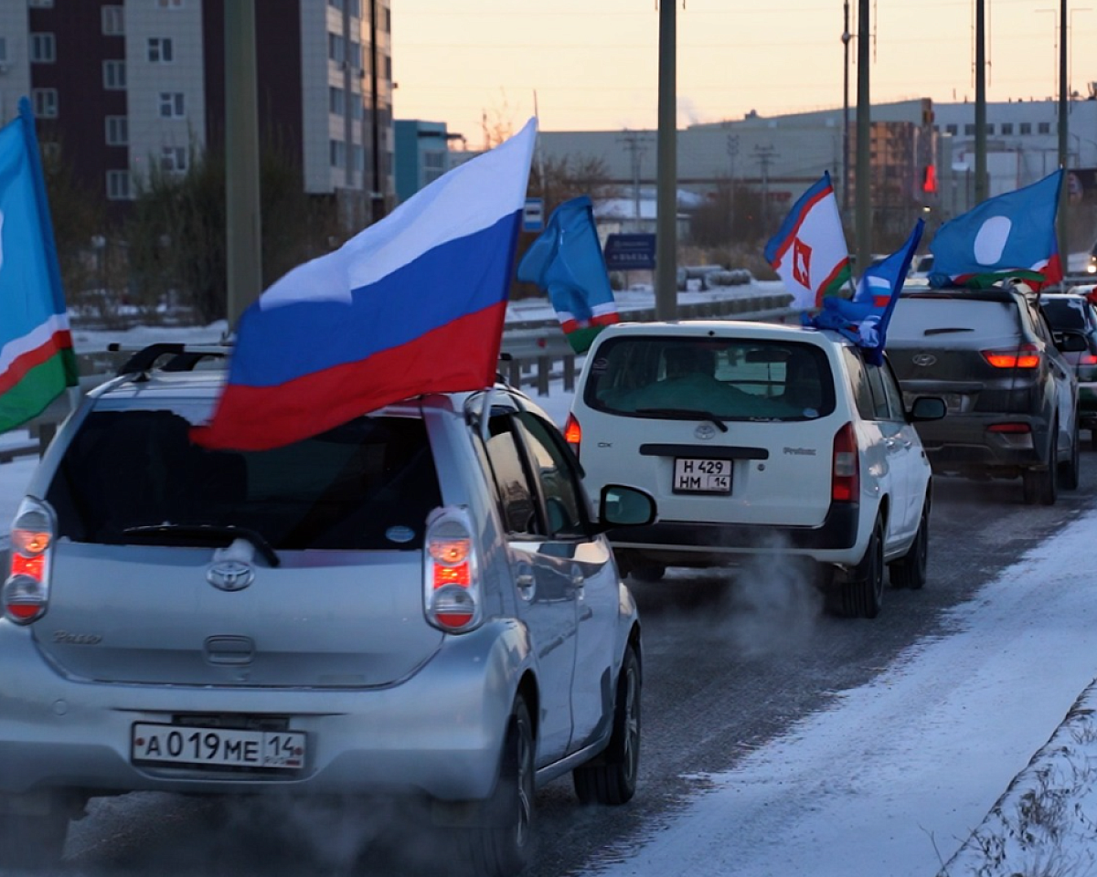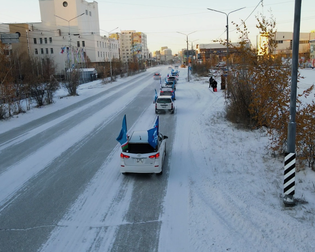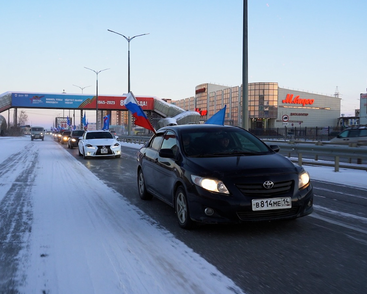 Колонна автомобилей, украшенных флагами, стартовала от Парка Победы в Якутске. Маршрут прошёл по центральным улицам столицы и завершился у Исторического парка «Россия – моя история».