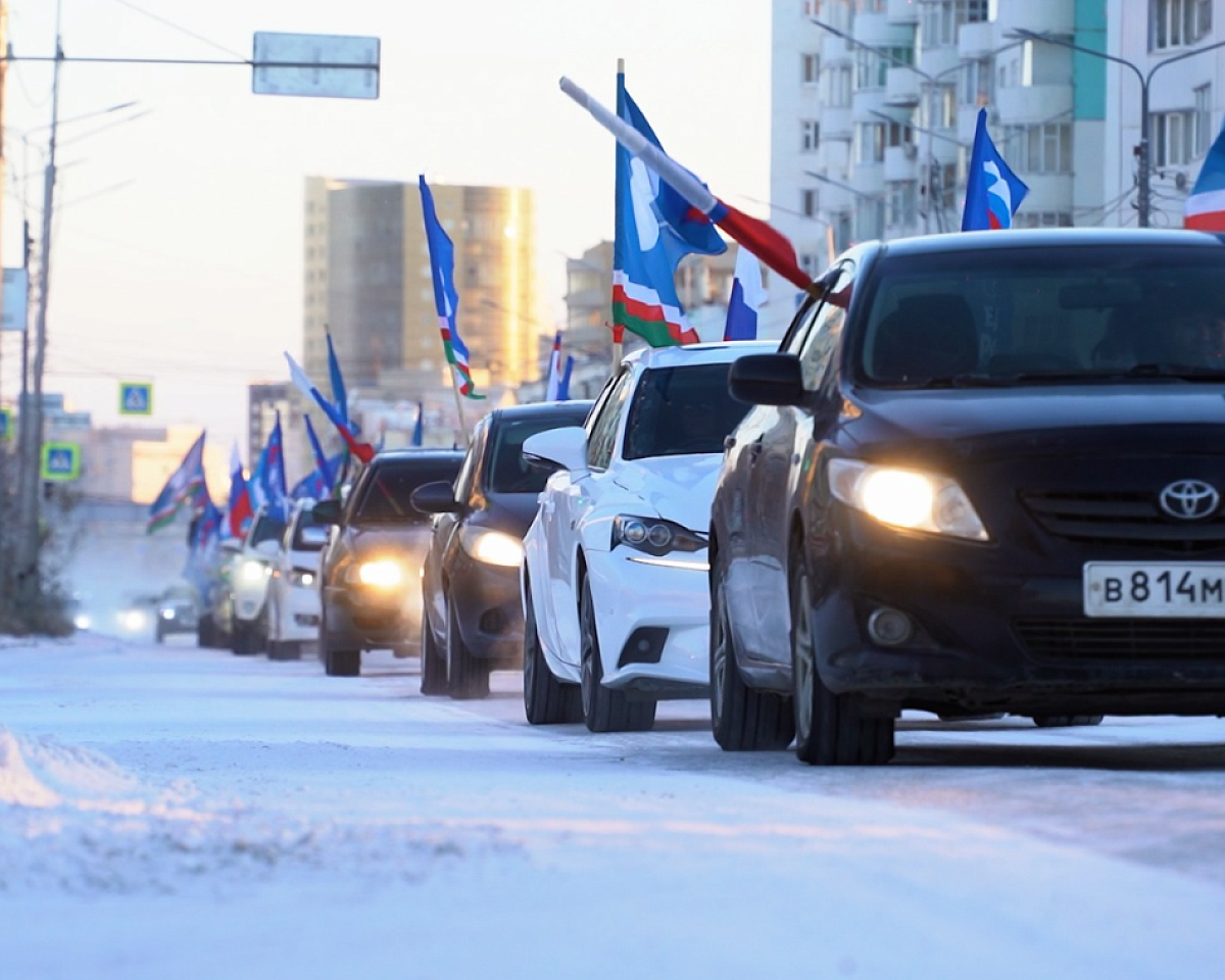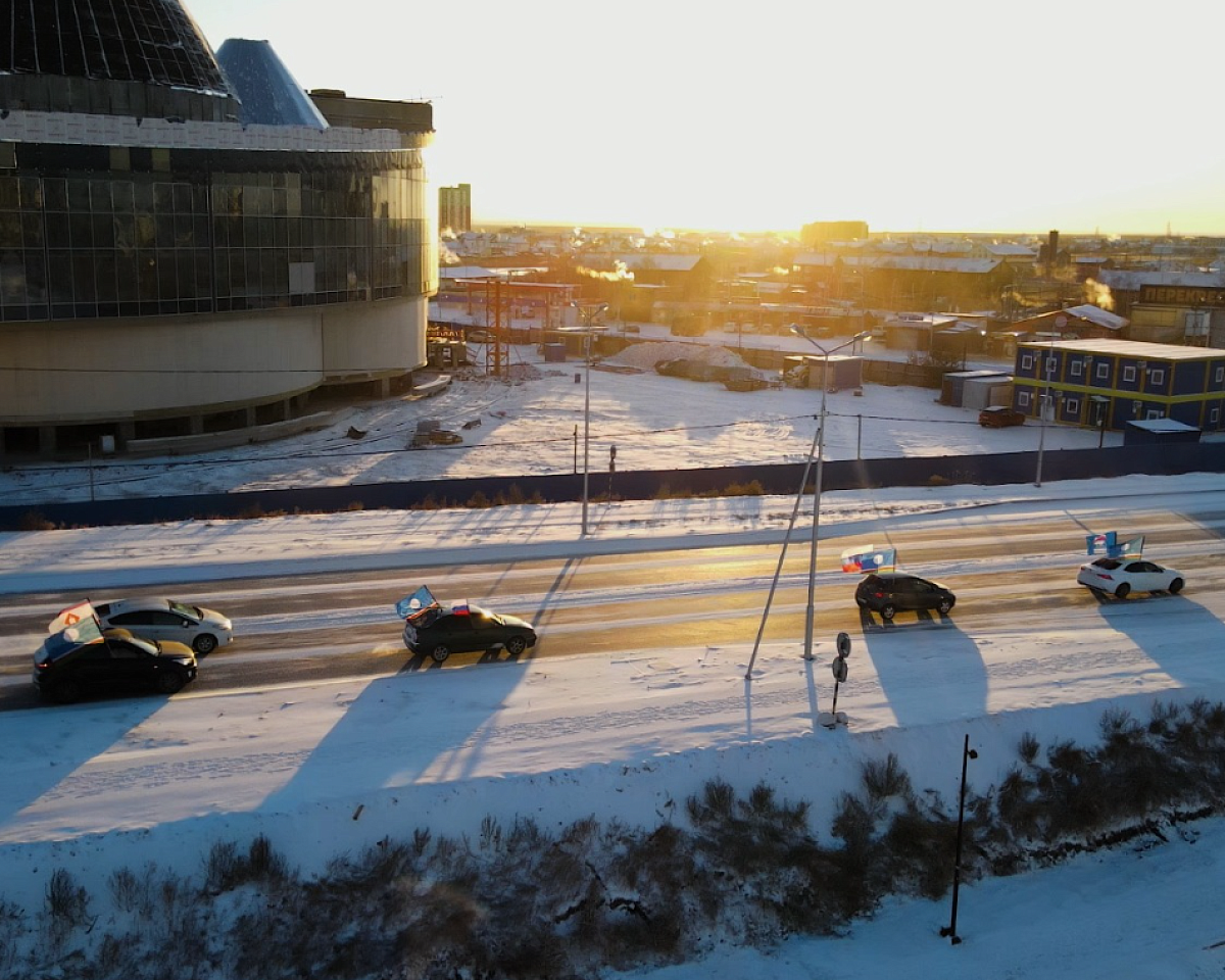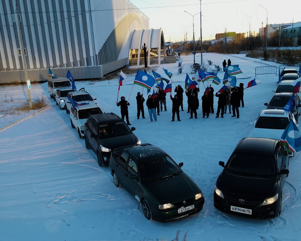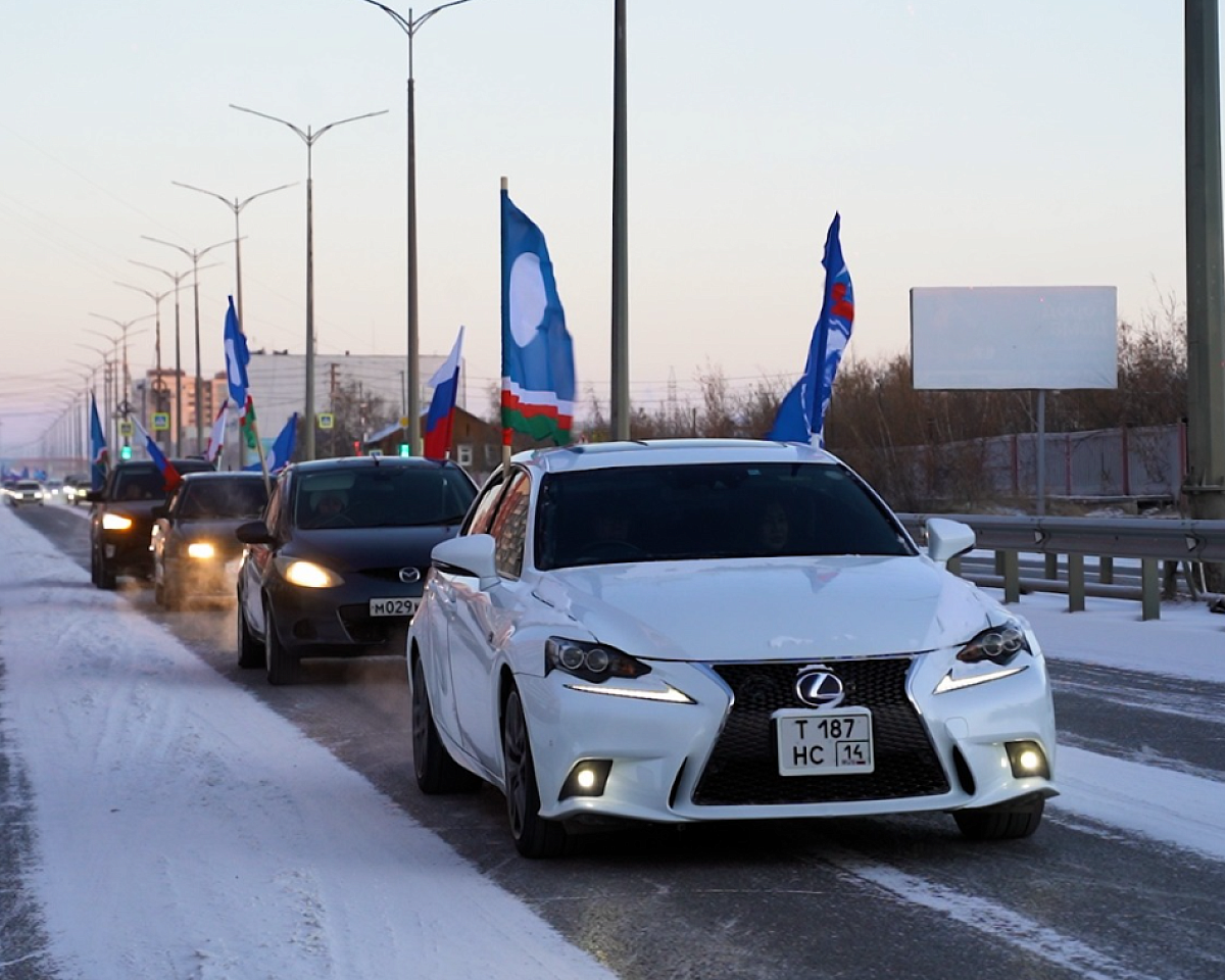 Колонна автомобилей, украшенных флагами, стартовала от Парка Победы в Якутске. Маршрут прошёл по центральным улицам столицы и завершился у Исторического парка «Россия – моя история».